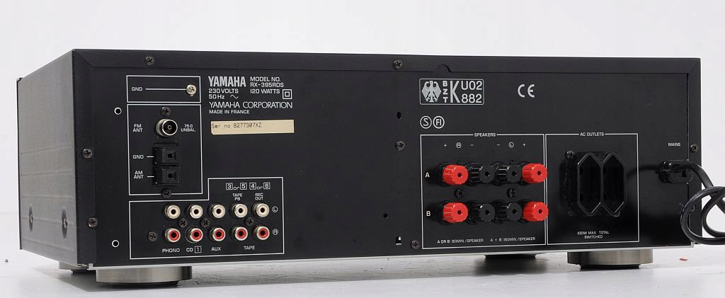 Amplituner firmy Yamaha, przeznaczony do odsłuchu w trybie stereo (czyste stereo, bez procesorów dźwięku przestrzennego, bez wbudowanych ustawień korekcyjnych), posiadający na pokładzie wszelkie niezbędne opcje, urządzenie bardzo funkcjonalne. Końcówka mocy oparta na tranzystorach 4 SanKen (po 2 na kanał), nie ma mowy o żadnych scalakach STK, kondensatory wysokiej klasy – ELNA For Audio, potencjometry Alps. Amplituner w pełni sprawy (bez napraw, oryginał), sekcja wzmacniacza jak i tunera pracuje bez żadnych uwag. Tuner bardzo czuły, stroi precyzyjnie, nie ma wygórowanych wymagań wobec anteny, tryb stereo, RDS chodzi bezproblemowo. Poza gramofonem do oferowanej tu maszyny można podpiąć 3 dodatkowe źródła dźwięku, podłączenie przykładowo cd, deck`a, komputera oraz dekodera TV cyfrowej nie będzie stanowić żadnego problemu. Występuje również funkcja płynnie regulowanego LOUD`u, dająca świetny efekt, właściciele innych firm takiego udogodnienie nie posiadają, dlatego między innymi ratują się zakupem korektora graficznego :)