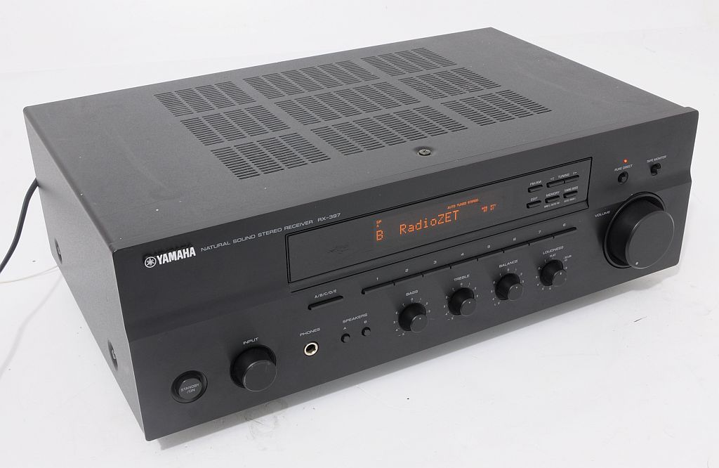 Amplituner stereo Yamahy. Aktualnie obserwowany jest niesamowity renesans urządzeń stereo. I to z dwóch powodów: Po pierwsze ludzie nie chcą skomplikowanych urządzeń, w których non stop się coś przestawia, trzeba kręcić, konfigurować itp , a z taką sytuację mamy najczęściej z kinówką - po drugie - urządzenia stereo po prostu przy odsłuchu stereo grają dużo lepiej. Poza tym są miejsca gdzie wizja nie jest potrzebna - biura, bary, sypialnie itd a sprawne, proste i dobrze grające stereo jest niezastąpione - i po to jest RX-397