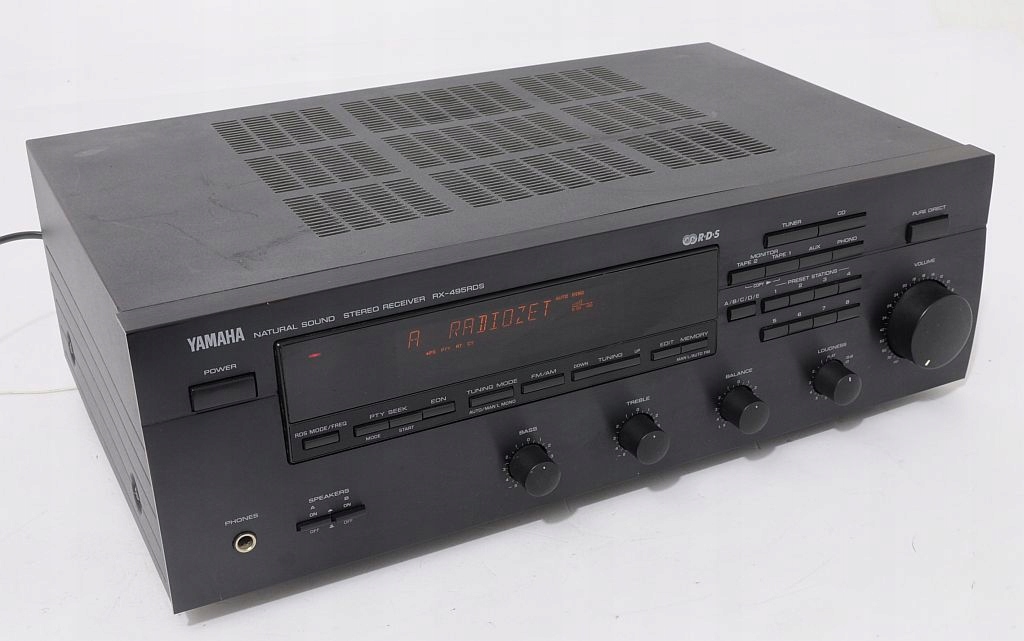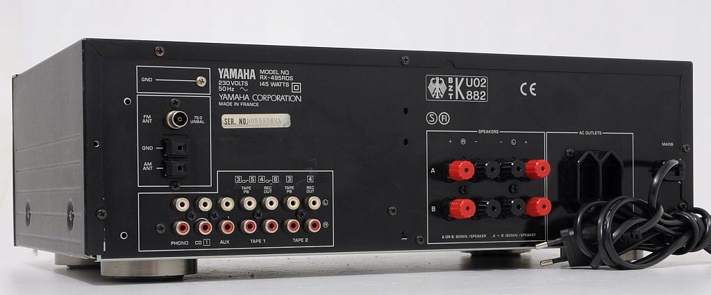 Amplituner firmy Yamaha, przeznaczony do odsłuchu w trybie stereo (czyste stereo, bez procesorów dźwięku przestrzennego, bez wbudowanych ustawień korekcyjnych), posiadający na pokładzie wszelkie niezbędne opcje, urządzenie bardzo funkcjonalne. Końcówka mocy oparta na tranzystorach 4 SanKen (po 2 na kanał), nie ma mowy o żadnych scalakach STK, kondensatory wysokiej klasy – ELNA For Audio, potencjometry Alps. Amplituner w pełni sprawy (bez napraw, oryginał), sekcja wzmacniacza jak i tunera pracuje bez żadnych uwag. Tuner bardzo czuły, stroi precyzyjnie, nie ma wygórowanych wymagań wobec anteny, tryb stereo, RDS chodzi bezproblemowo. Poza gramofonem do oferowanej tu maszyny można podpiąć 4 dodatkowe źródła dźwięku, podłączenie przykładowo cd, deck`a, komputera oraz dekodera TV cyfrowej nie będzie stanowić żadnego problemu. Występuje również funkcja płynnie regulowanego LOUD`u, dająca świetny efekt.