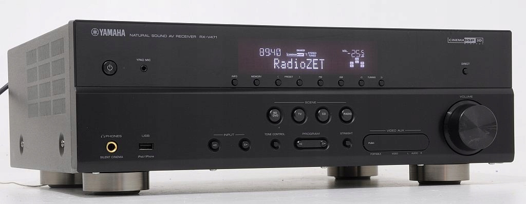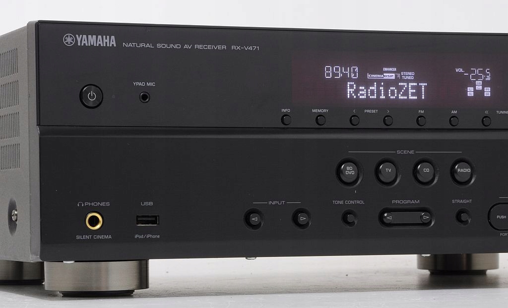 Yamaha została założona w 1887 roku. Celem firmy zawsze było wzbogacanie ludzkiej kultury poprzez koncentrację na dźwięku i muzyce. Od 50 lat, Yamaha jest najbardziej znanym i najbardziej innowacyjnym producentem wysokiej jakości sprzętu audio i kina domowego. Yamaha jest uważana za pioniera i przodującą markę na rynku urządzeń przeznaczonych do odtwarzania muzyki wielokanałowej i instalacji kina domowego, których początki sięgają roku 1986. RX-V471 to 5.1-kanałowy amplituner AV oferujący 4 wejścia / 1 wyjście HDMI (kompatybilne z 3D i Audio Return Channel), cyfrowe wejście USB na panelu przednim do podłączenia iPhona i iPoda, dekodowanie HD Audio z CINEMA DSP 3D, YPAO oraz funkcje SCENE.