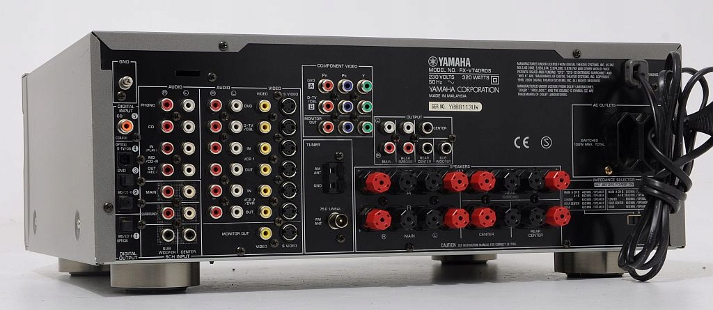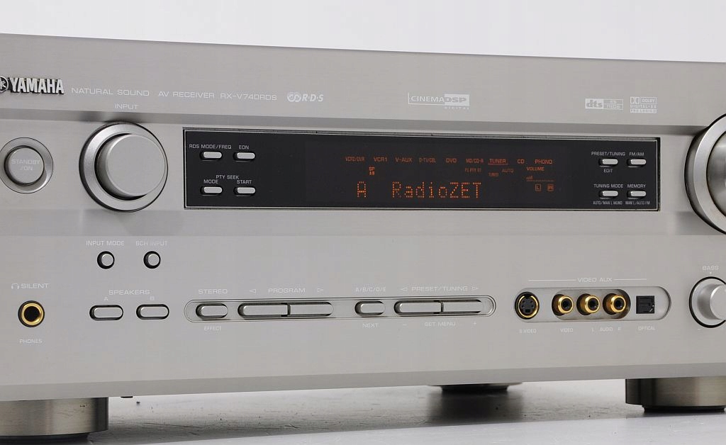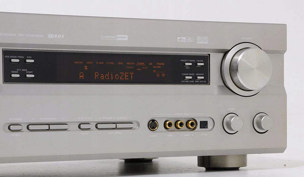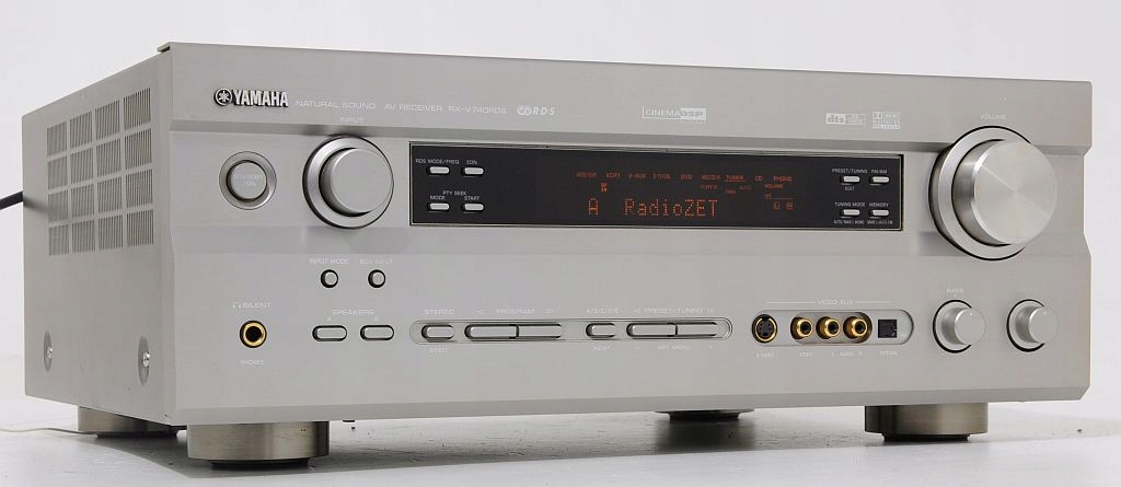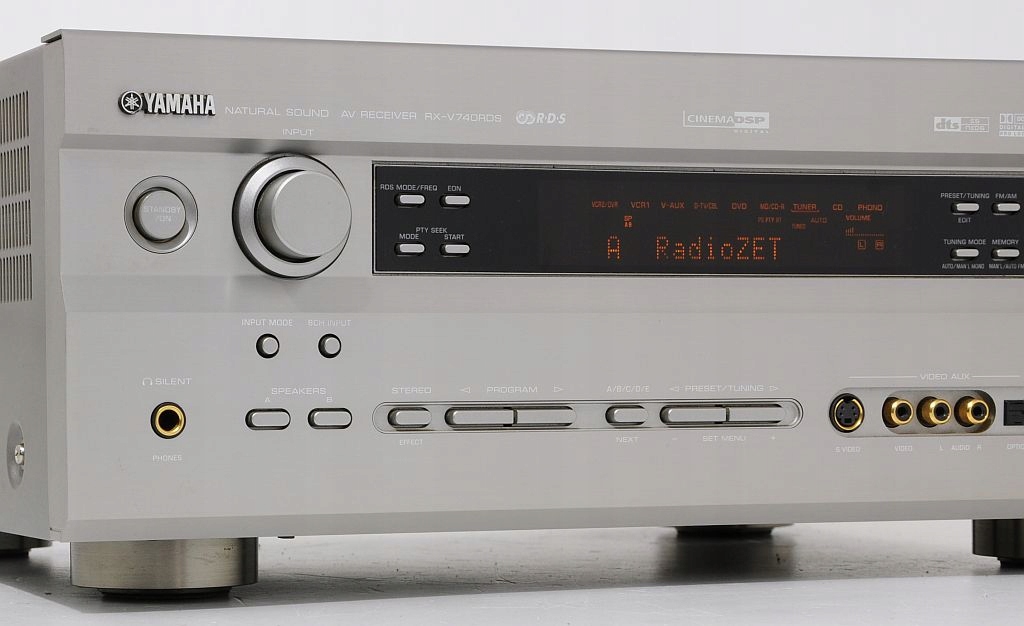 Solidny amplituner kina domowego firmy Yamaha.Wyposażony jest w dekoder DTS. Amplituner pochodzi z przedostatniej linii tego producenta. Duży, czytelny wyświetlacz podaje informacje o aktualnych ustawieniach amplitunera. Wszystko jest jasne i dobrze widoczne. Dla amatorów słuchawek przygotowano procesor silent cinema, tworzący pola dźwiękowe jak podczas korzystania z głośników. Jak zwykle w przypadku Yamahy, procesor DSP jest bardzo rozbudowany i jeśli ktoś lubi się nim bawić, będzie z pewnością usatysfakcjonowany.Niezależnie, czy słuchała się muzyki, czy ogląda film, RX-V740RDS obdarza mnóstwem miłych doznań jest zawsze dynamiczny i nieskrępowany zaskakiwał otwartością, wybrzmieniem góry i przestrzenią. Bas godny jest droższych konstrukcji. Słuchając stereo, momentami czuje się, że jest to wysokiej klasy wzmacniacz. Przynależność do rodziny Yamaha jest swoistą gwarancją reprodukcji dźwięku na najwyższym poziomie.